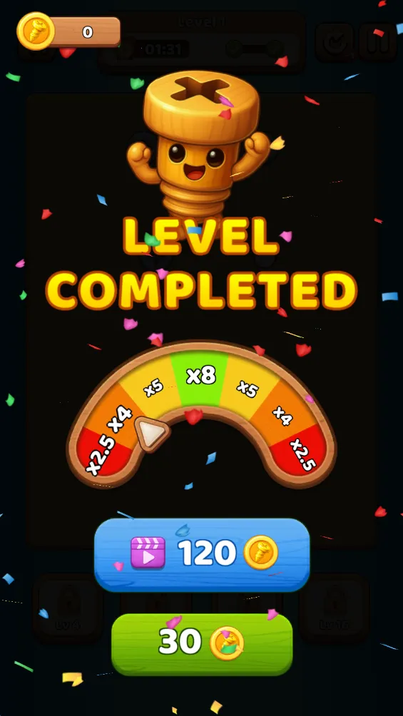 1. 包含渐进式难度设计,由简至繁,从单一平面螺丝群到双层交叠与隐藏螺丝机制,逐步提升挑战。