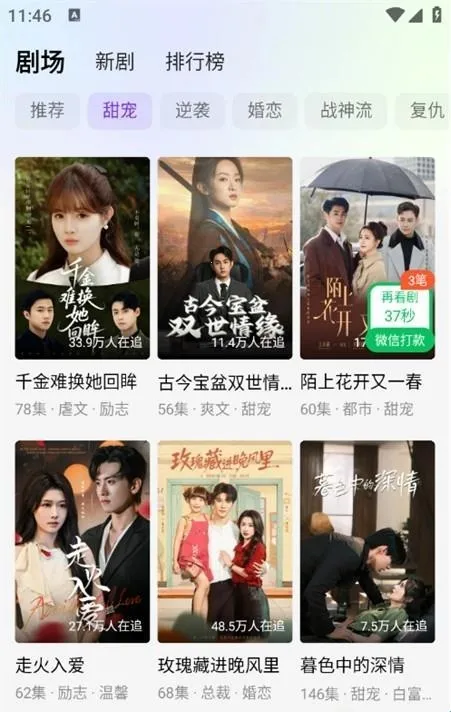 1. 海量短剧资源丰富多样,甜宠逆袭、婚恋复仇等各种风格类型应有尽有,满足多样化观看需求。