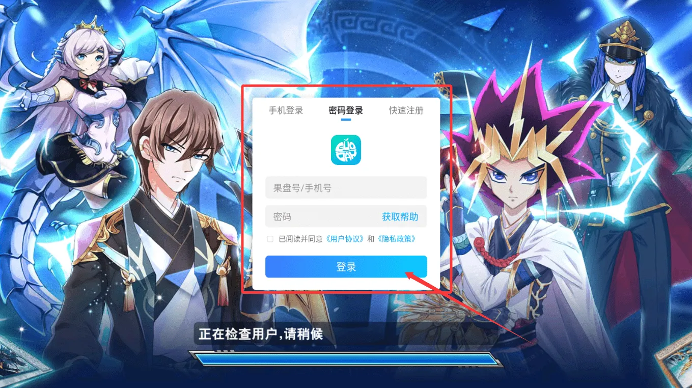 1、启动游戏后需要先完成账号登录,支持手机号或快速注册,在登录前务必阅读并勾选同意用户协议与隐私政策,之后系统会进行用户验证,稍等片刻即可进入主游戏界面。