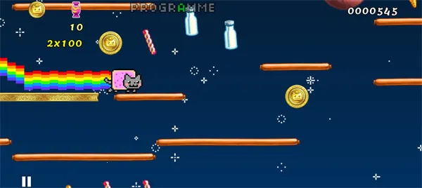 彩虹猫迷失太空的原型其实源自经典的像素跑酷玩法,专为喜欢休闲游戏的玩家打造。这款游戏采用复古像素画风,色彩斑斓的太空场景中,你将操控彩虹猫在宇宙迷城、田野间快乐奔跑。猫咪会自动前进,只需点击屏幕即可跳跃,连续点击还能二段跳,操作极其简单。途中要躲避炸弹等陷阱,同时收集糖果和能量获取高分。游戏还包含多种道具和皮肤,更有在线排行榜和漫画内容。无论是想放松解压,还是挑战高分,这款官方版都能带来欢乐的跑酷体验,快来下载开启你的太空冒险吧!