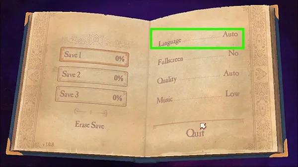 3、这里需要玩家点击绿色方框内的Language一栏的选项更换中文;