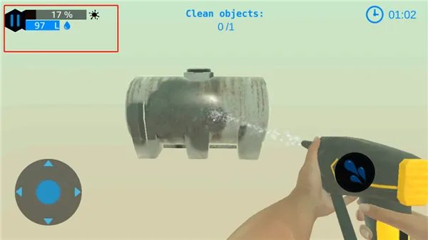 2、左上角的提供了进度条,进度达到百分百时,物体就能清理完成,水滴代表水量,水量为零时通关失败